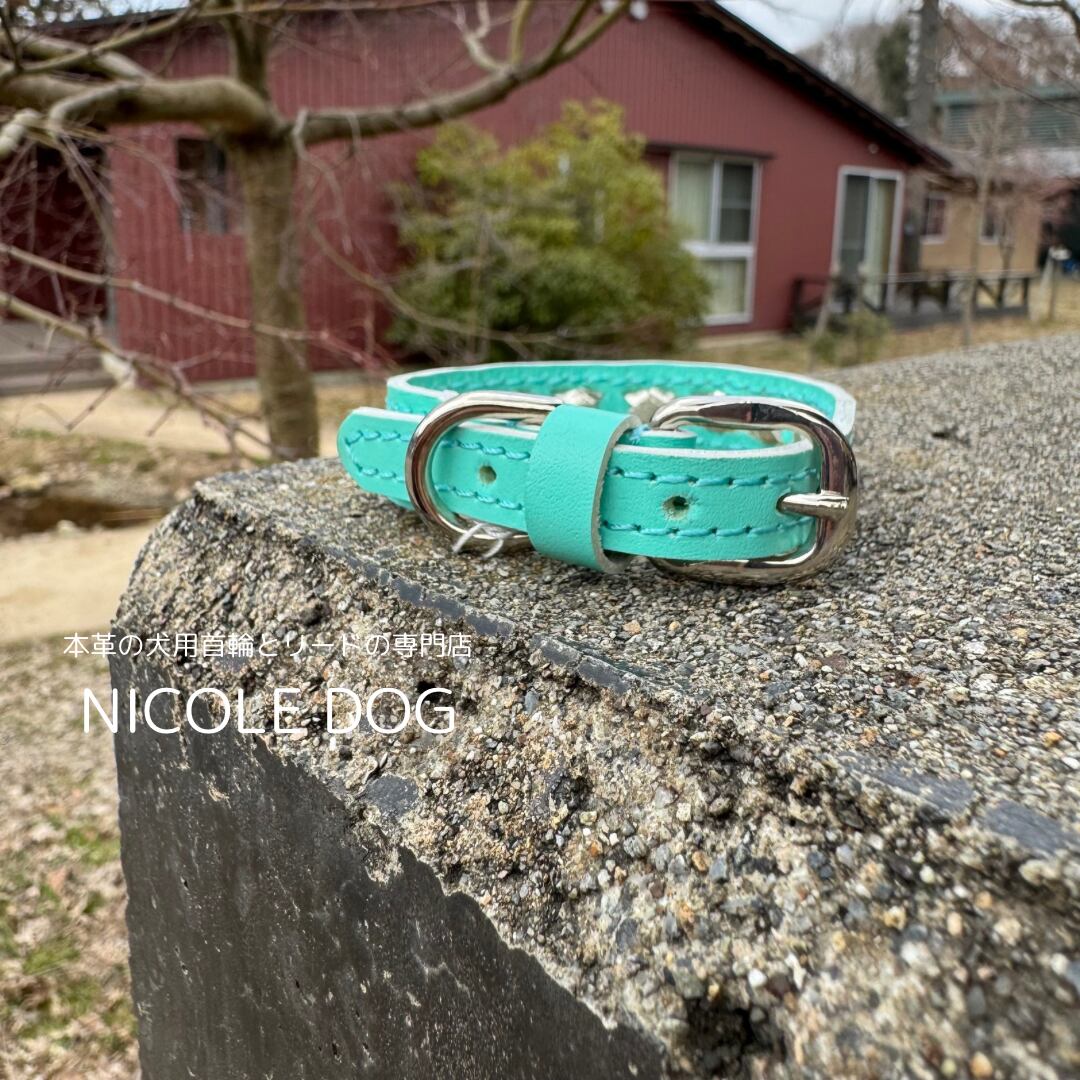 NICOLE DOG オリジナル首輪 -ロビンズエッグブルー×ゴールド-