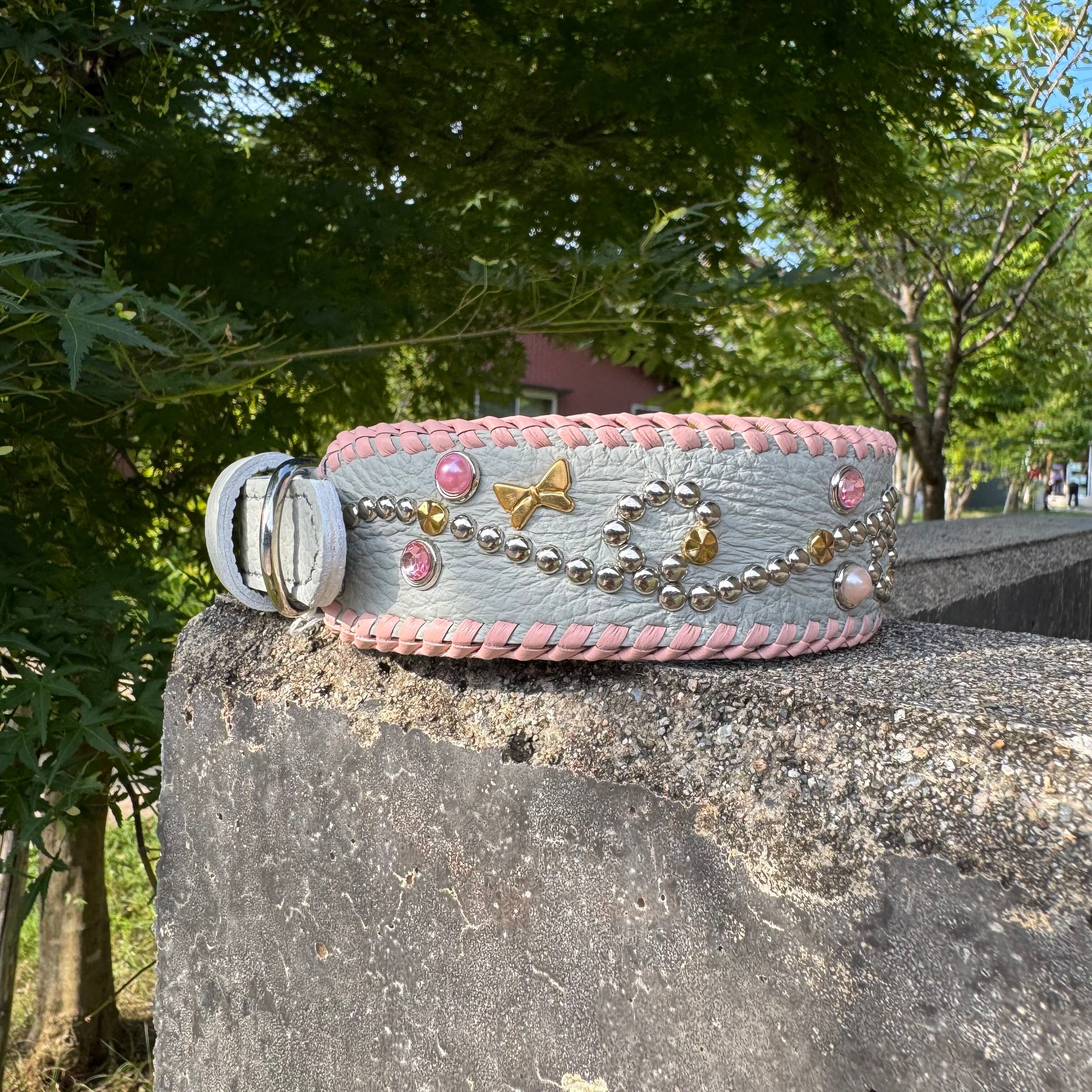 NICOLE DOG オリジナル首輪 - ブルーグレー×ピンク-
