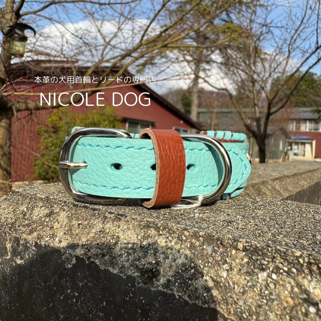 柔らかい水色の革にホワイトの革でクロスしたデザイン。
